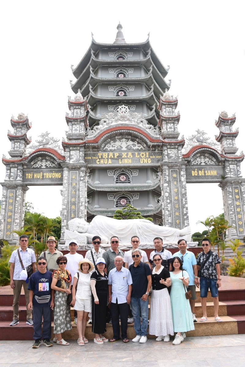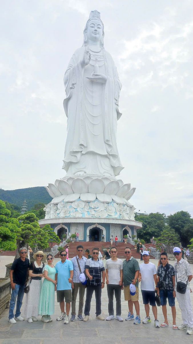 Sáng ngày 24/7/2025, kết thúc chuỗi hành trình Du lịch đoàn tham quan và dâng hương tại chùa Linh Ứng – bán đảo Sơn Trà, đoàn đã lưu lại những khoảnh khắc ý nghĩa khi chụp ảnh lưu niệm dưới chân tượng Phật Bà Quan Âm cao nhất Việt Nam, biểu tượng tâm linh thiêng liêng giữa non nước trời mây. Đoàn cũng ghé thăm và chụp ảnh tại tháp Xá Lợi, công trình kiến trúc đặc sắc trong khuôn viên chùa, nơi lưu giữ nhiều giá trị văn hóa – tâm linh sâu sắc của Phật giáo