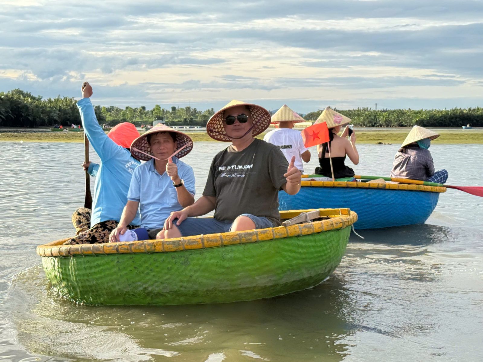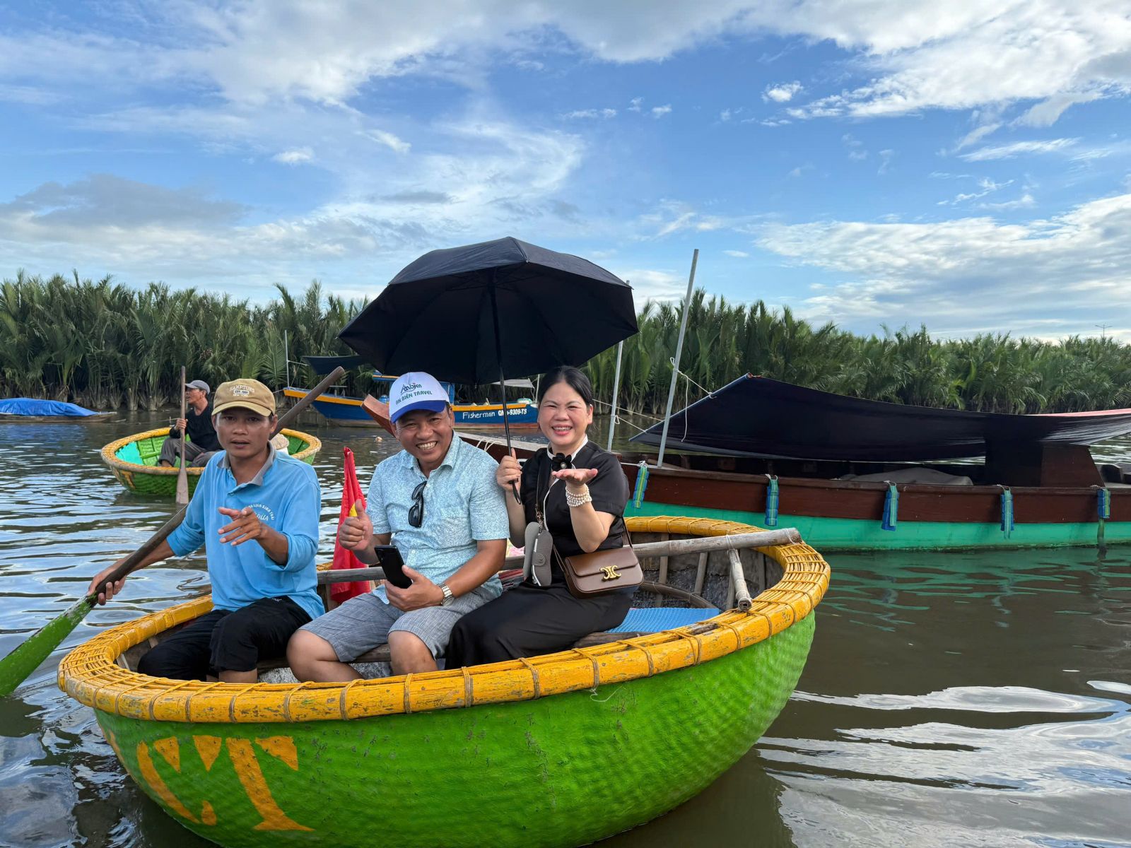 Chiều ngày 23/7/2025, Đoàn đã trải nghiệm thuyền thúng tại rừng dừa Bảy Mẫu – nét độc đáo của du lịch sinh thái miền Trung