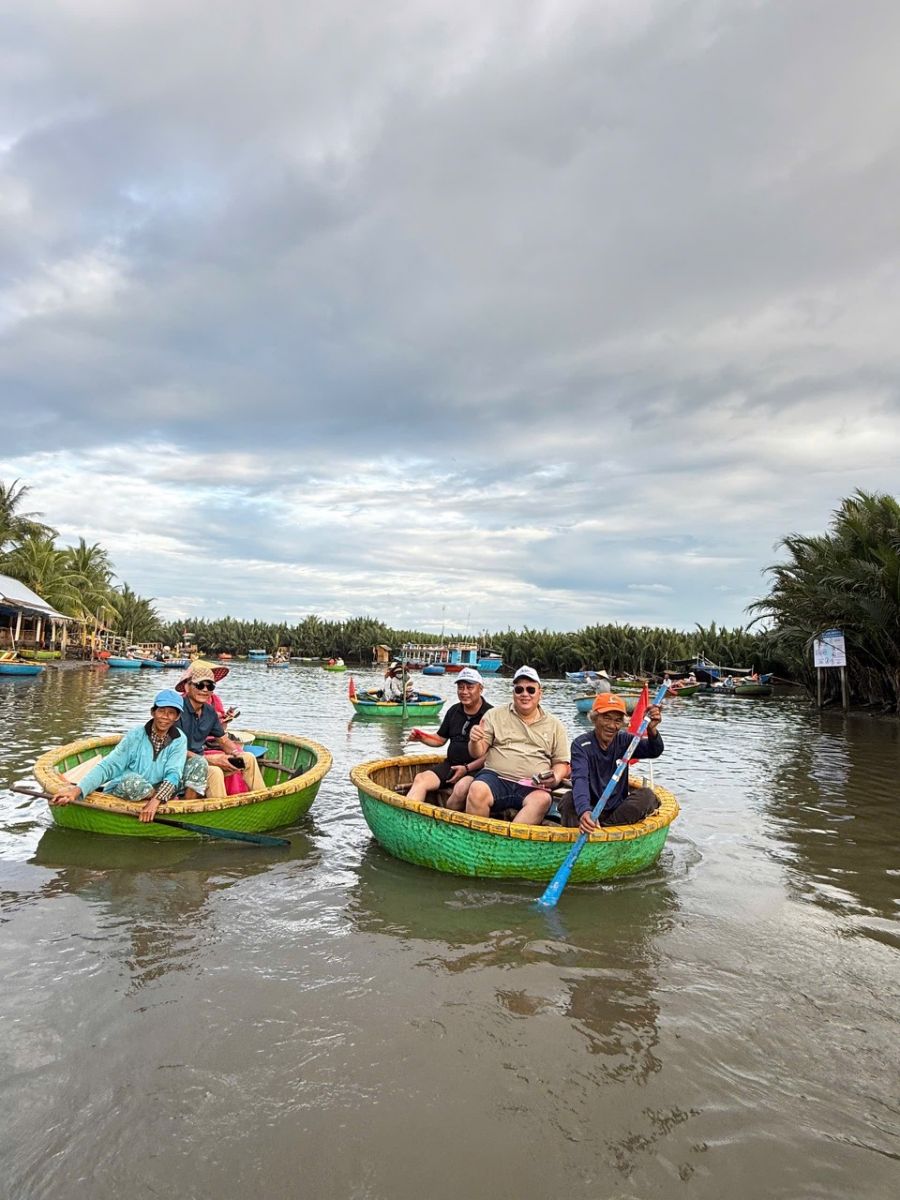 Không chỉ đơn thuần là ngồi thuyền tham quan, một số anh chị em trong đoàn còn được trực tiếp tham gia các hoạt động thú vị như biểu diễn quay thúng… mang lại cảm giác thư giãn, vui vẻ và gần gũi với văn hóa bản địa...dưới đây là một số khoảnh khắc vui tươi của đoàn trên thuyền thúng giữa không gian xanh mát rừng dừa